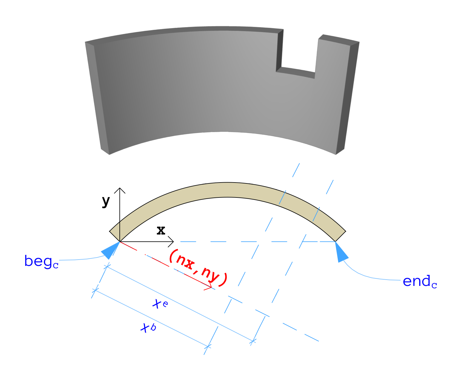 The picture below shows how gable parameters should be interpreted for curved walls: